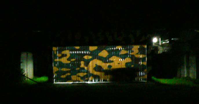designed a camouflage pattern to be printed on curtains for his garage in order