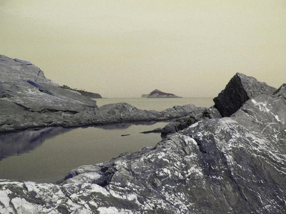 Subtle color gradient applied beneath a two levels of radial blur. |
