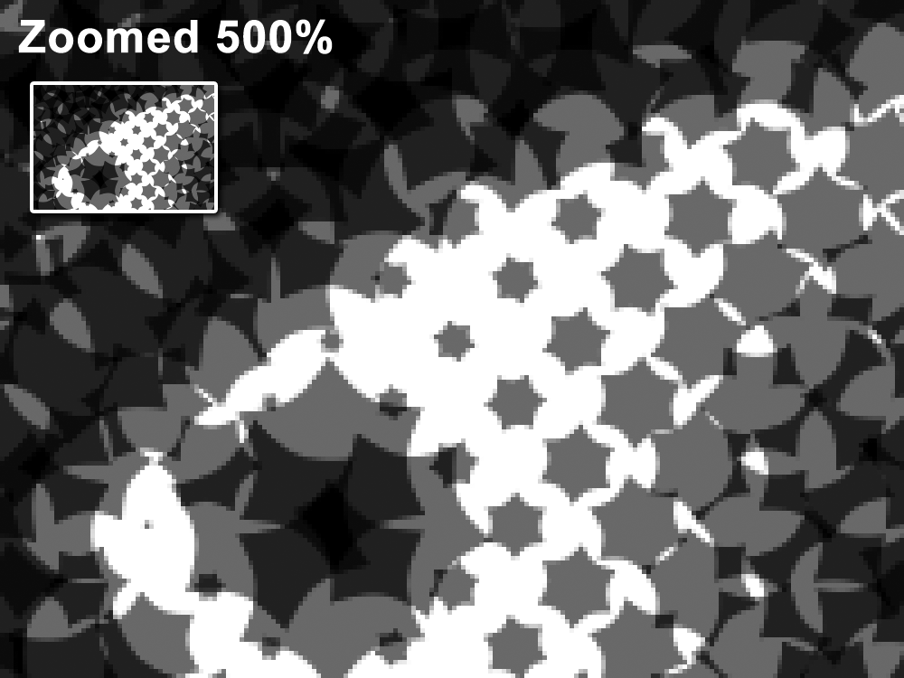 Absolute top qualityHalftone uses mathematical models for it's built-in shapes and special interpolation algorithms for custom bitmap shapes. If you work with 16-bit images, you'll be glad to hear anti-aliasing is 16-bit too! The quality shows when comparing to other halftone pattern software. Halftone draws smooth edges for all shapes - even the ones you designed yourself! - and all image modes and if you don't want the anti-aliasing, you can turn it off while still having the benefit of all high precision calculations. |