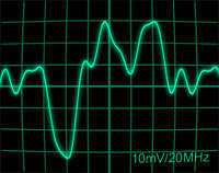 Harmonix Plugin Example Scope. Simulated osciloscope screen, altered afterwards by applying spherical deformation.
